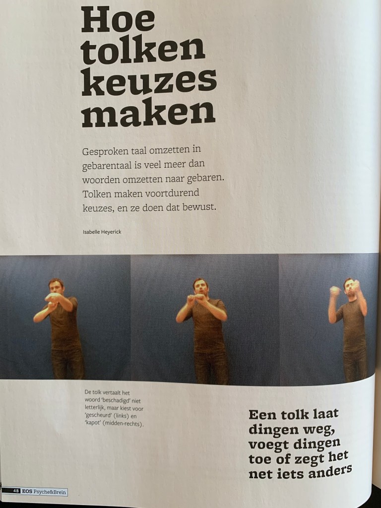 Het artikel gaat in op de strategieën die tolken Nederlands – Vlaamse Gebarentaal (en bij uitbreiding alle tolken) gebruiken en de keuzes die ze maken. Het benadrukt dat die keuzes deel uitmaken van het tolken en dat tolken niet zomaar iets doen maar hun keuzes kunnen motiveren en verklaren.